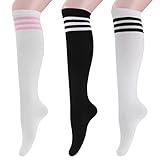 - El Paquete Incluye: Recibirás 3 pares de calcetines hasta la rodilla a rayas, adecuados para usar durante todo el año, ponte los calcetines deportivos a rayas por encima de la rodilla para un espíritu deportivo instantáneo, que te hará lucir enérgico. Los calcetines hasta la rodilla son lo suficientemente altos, envuelven las rodillas y las pantorrillas y no se sienten demasiado apretados.