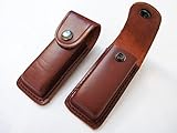 - Funda de piel para cuchillos de bolsillo con cierre de botón a presión